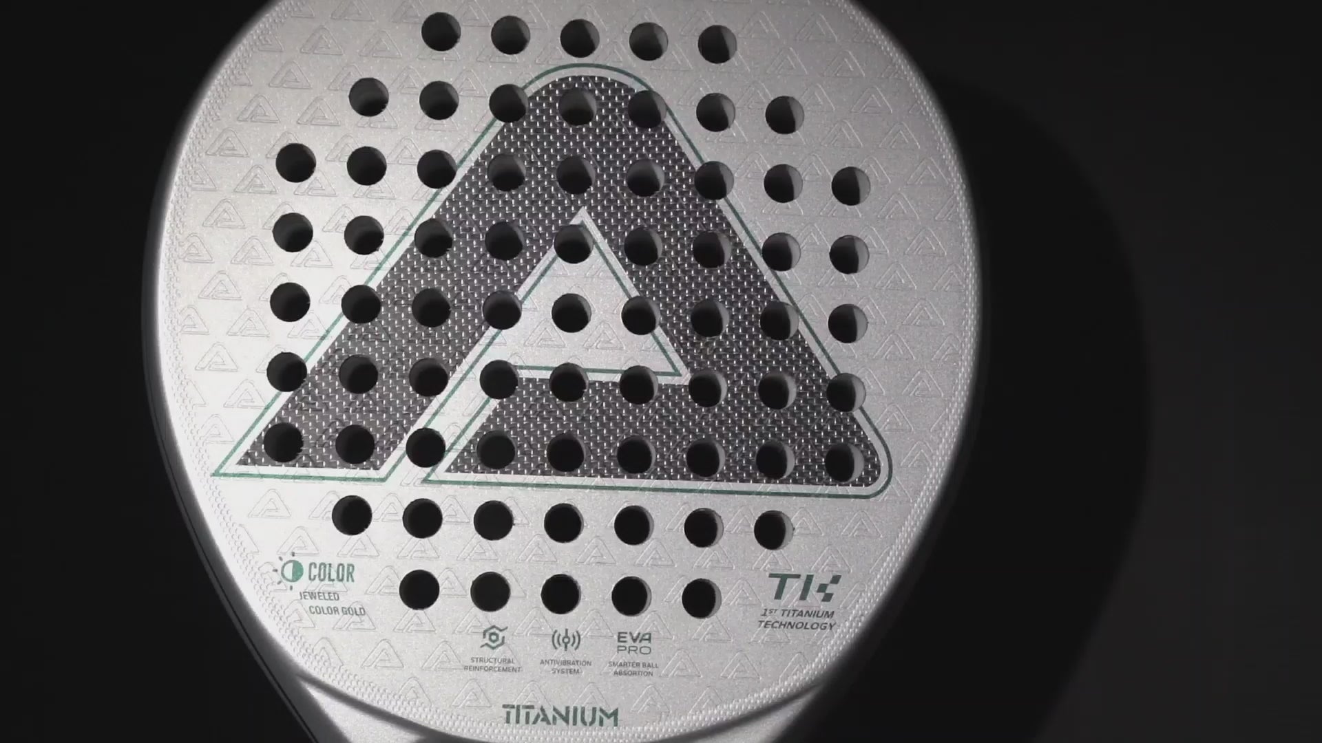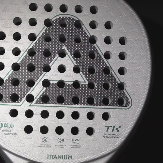 - Titanium technology enhances the performance of the racket surface.